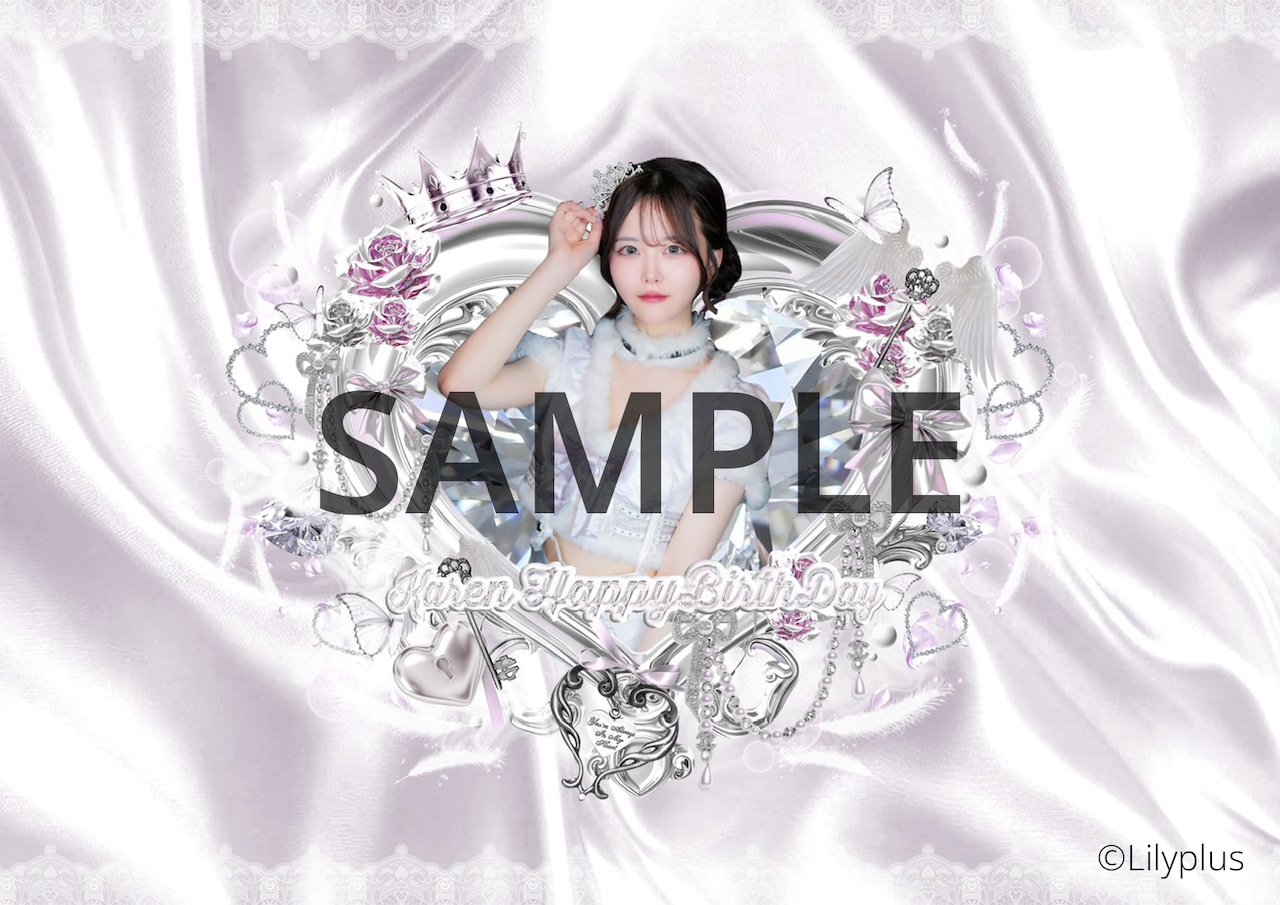 限定ブロマイド(B)1枚・アクリルキーホルダー1個・アクリルスタンド(実写)1個の豪華特典付き!さらに生誕祭限定オリシャンを計2本以上ご注文いただいた方には、かれんちゃんの証明写真も1枚同封させていただきます!